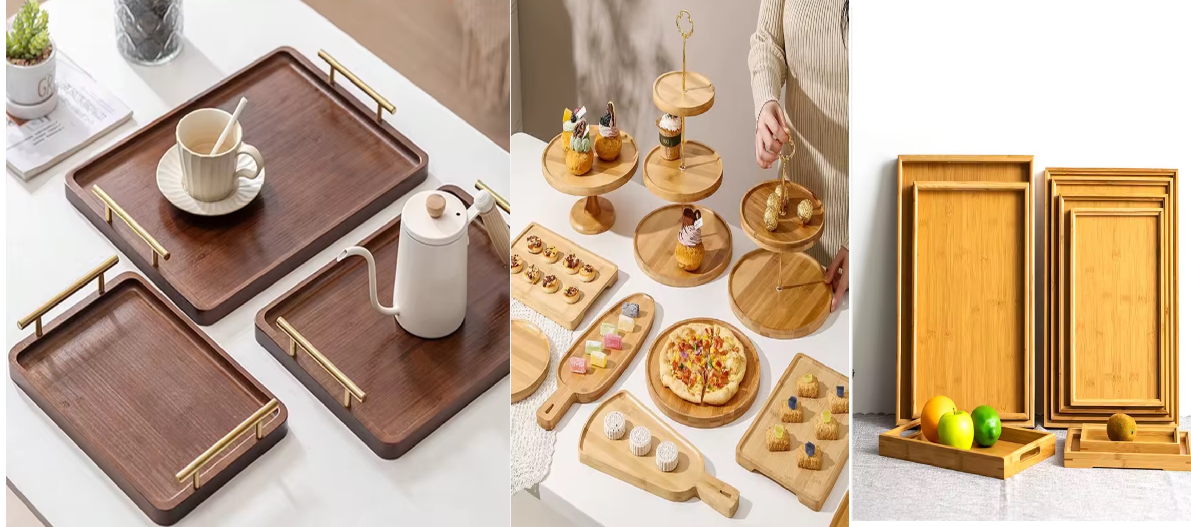 سینی بامبو دسته طلایی رنگ ثابت مدل لبه دار ست 3 سایز